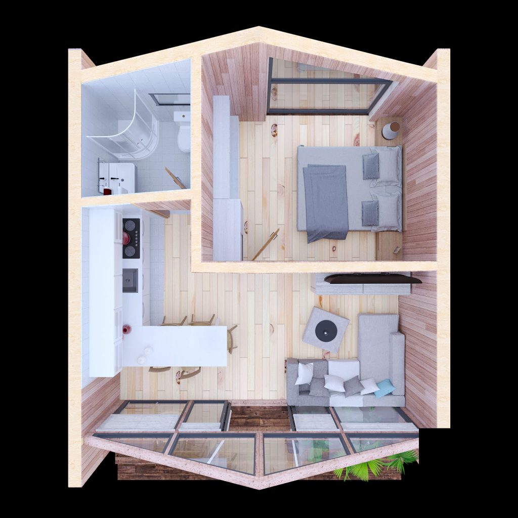 - Лестница — подъем на антресоль по одномаршевой лестнице.